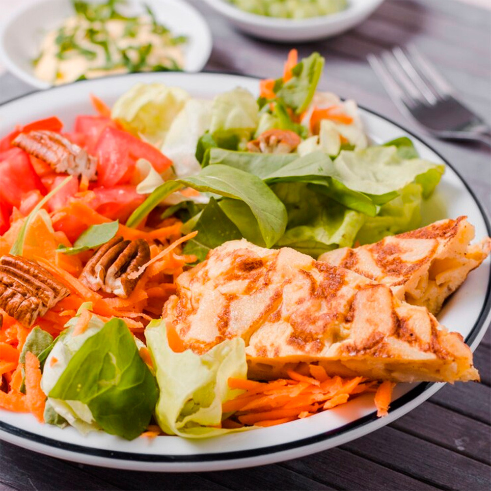 • Saladas Frescas: Ingredientes selecionados para uma refeição leve.